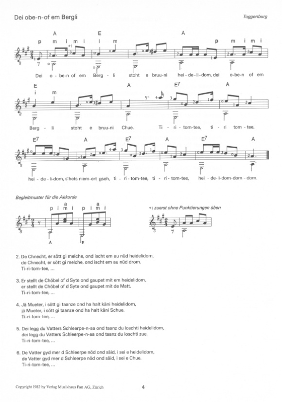 Nach methodischen Gesichtspunkten progressiv geordnet ist diese kleine Auswahl alter, gern gesungener Schweizer Volkslieder für Gesang und Gitarre. Leicht bis mittelschwer.